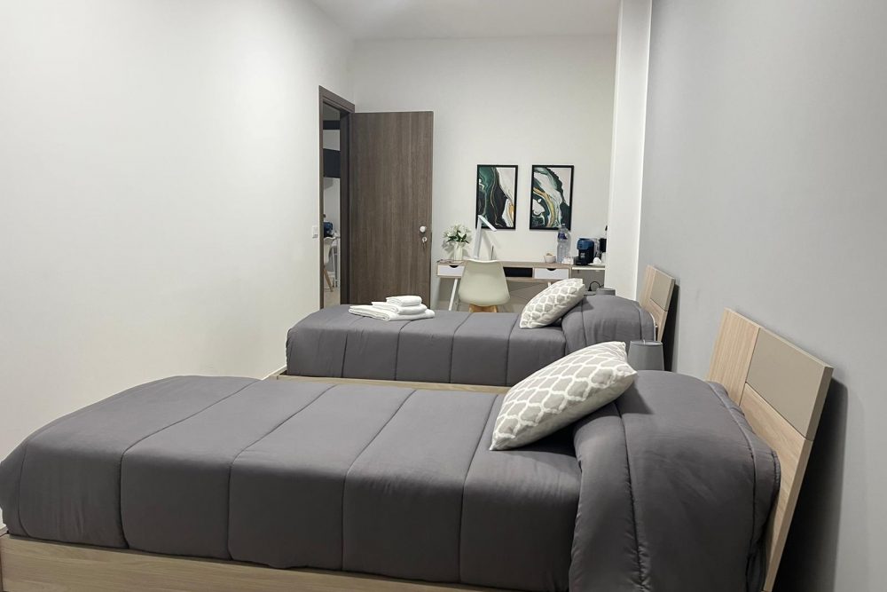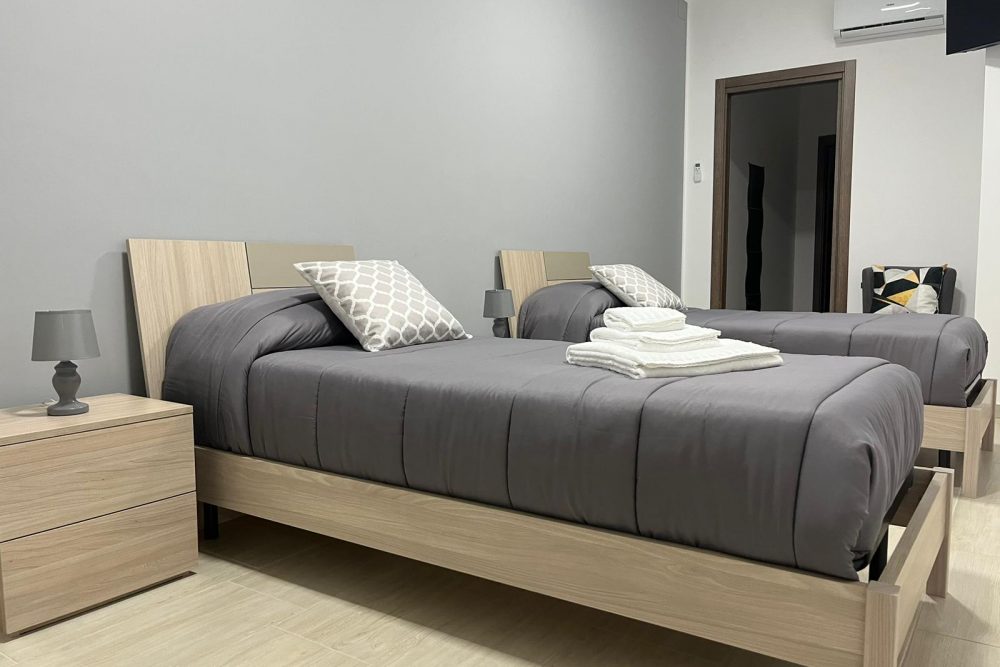 La camera doppia con letti singoli, ha i letti  con materassi memory foam con il bagno privato.